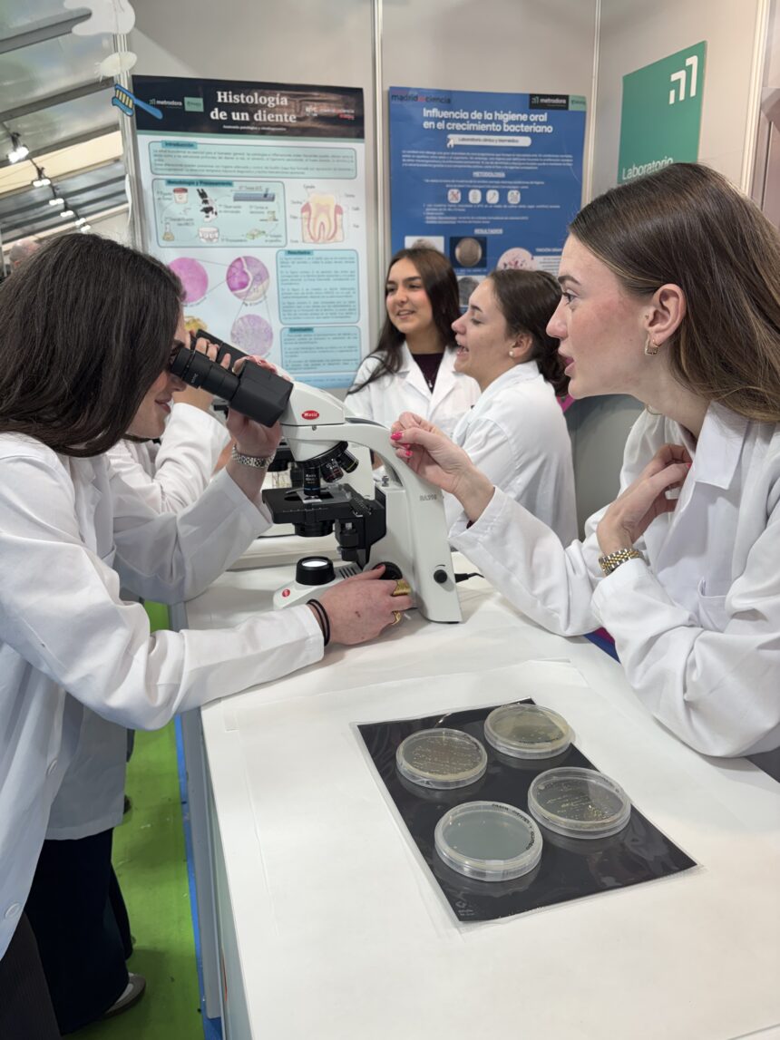 En esta edición, metrodora FP presenta el proyecto “Alimenta tu sonrisa. Enemigos microscópicos”, que aborda la salud bucodental desde un enfoque multidisciplinar y ha sido realizado por alumnos y profesores de cuatro de sus ciclos oficiales de Formación Profesional sanitaria de Grado Superior (Laboratorio Clínico y Biomédico, Anatomía Patológica y Citodiagnóstico, Dietética y Salud Bucodental). Lo presentan hoy, de 10:00 a 19:00 horas, en el stand E09 (Carpa externa), de La Nave (Calle Cifuentes 5, Villaverde),