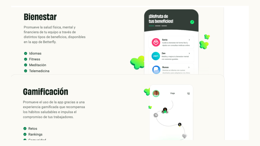 Betterfly integra retribución flexible, seguros y beneficios en una plataforma 100% personalizable que se adapta a las necesidades individuales, empoderando a las personas para vivir su mejor vida. A través de esta plataforma, los gestores de recursos humanos pueden diseñar y personalizar fácilmente los beneficios para sus equipos, impulsando su compromiso y reduciendo la carga operativa.